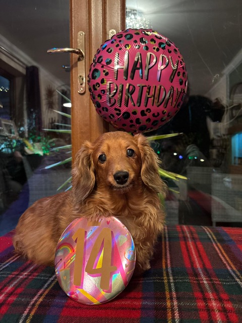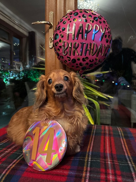 We were all very happy that in 2025, Dolly was able to celebrate her thirteenth birthday. This was especially so since she had an infection in November 2024, an infection which was finally dispatched, after some medication, at the end of January. Dolly, of course, is the oldest of us four canines, and her birthday was a tribute to her stamina, and to the loving care and companionship she received throughout her long (for a Dachshund) life.