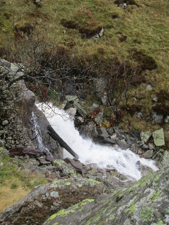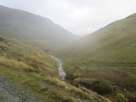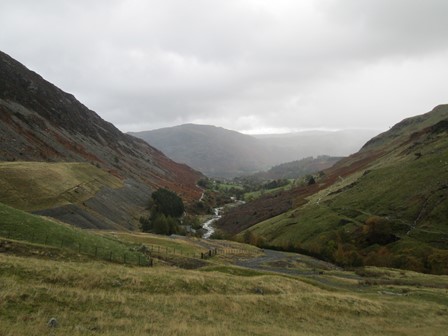 Greenside Lead Mine had closed in 1960, but its workings were still much in evidence. There was a reasonable road up from Glenridding up to the mine beccause close by there were two hostels, one a YHA. From here, the paths divided, and we took the steeper - and probably the more scenic - right hand option to Sticks Pass via a lively mountain stream and a high, but sheltered, plateau. Later in the afternoon, we would be descending on the left hand path.