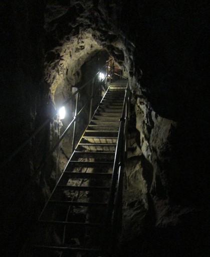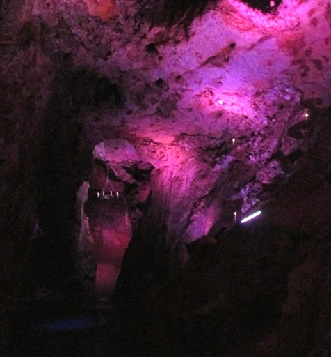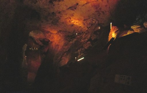 There are three groups of caves, the uppermost group of which is accessible from the Heights of Abraham. In this uppermost group we find the Great Masson and the Great Rutland Caverns. These caves are naturally coated with "a clay-like substance that inhibits deposition" and so lack stalactites and stalagmites. These caves were mined for lead - in the form of Galena - from Roman times to the 1800s, until lead mining became unprofitable here. Fluorspar was also found here.