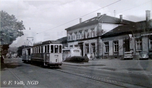 Am Bahnhof in Neckargemünd bietet uns die Ausstellung der Fotos vom Vater des jetzigen Bürgermeisters, Herrn Volk, einen Hauch einer vergangenen Welt. Im ersten Bild sehen wir vor dem Bahnhof die Straßenbahn die einst von Heidelberg bis zum Hanffmarkt in Neckargemünd verkehrte.