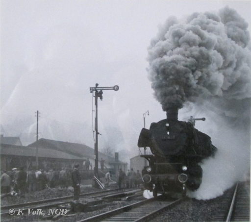 Hier ist eine Lokomotive der Baureihe 44. Diese leistungsfähigen ˝Güterzug-Einheitsdampflokomotiven˝ mit der Bauart 1'E-h3 stammten aus den Jahren 1926–1949 und besaßen eine Anfahrzugkraft von ungefähr 269 kN. Heute werden wir eine Dampflok der Baureihe 52 sehen.