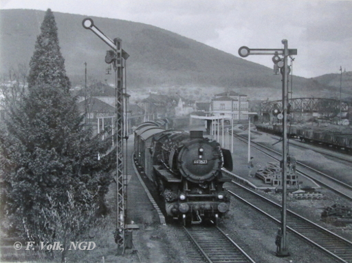 Auf diesem Bild macht sich eine ˝44er˝ (Nr. 44 1523) auf dem Weg nach Heidelberg.