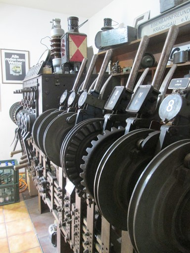 Im Fahrdienstleiterraum des Bahnhofgebäudes ist noch die komplette Hebel und Stellwerkanlage ...