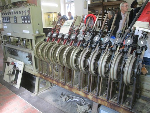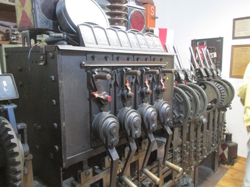 Im Lokschuppen kann man noch die komplette Hebel- und Stellwerkanlage sehen ...
