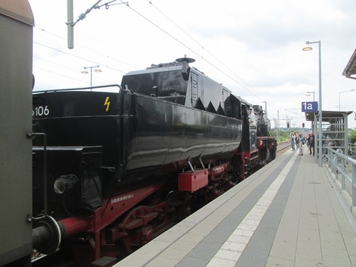Jetzt steht der ˝52er˝ mit Museumszug auf dem anderen Gleis (2a).