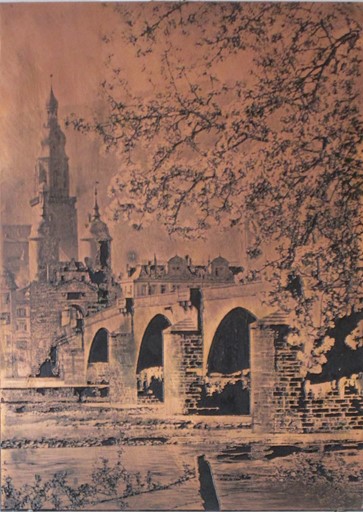 Hier ist noch eine Kupferplatte von einem berühmten Heidelberger Motiv,