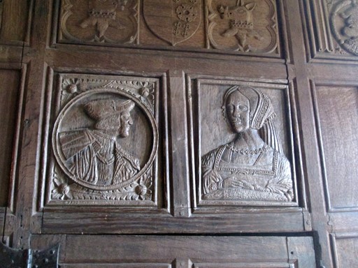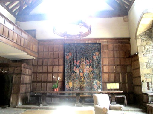 The first "room" in Haddon Hall which we enter is the Banqueting Hall. In many houses this would be called the "Great Hall" and it was where the master and mistress and their household would congregate and eat their meals in a formal setting. In mediaeval times, before the arrival of dedicated kitchens, there would, in the centre of the "Great Hall", usually be an open fire to provide warmth and often the facility to roast an ox or wild boar. There would also be, as at Haddon Hall, a minstrel gallery to provide the music for those attending the banquet. There would often be an additional room, or solar, to which the master and mistress could retire after the banquet.