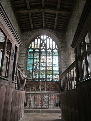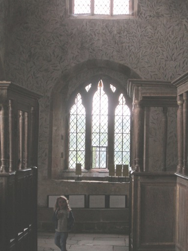 This chapel is dedicated to St Nicholas. It was originally Nether Haddon's parish church and somehow became incorporated into Haddon Hall! Wall paintings, the East Window and the screen behind the altar are all from the 15th century. However, parts of the Chapel were already built during the reign of our mutual friend, William the Conqueror. Fast forward now, and we see in the nave, the monument to Lord Haddon, who died aged 9, in 1894.