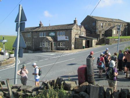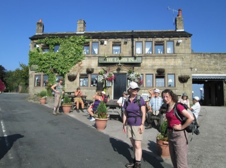 We pause for breath outside the "Lamb Inn", but stay determinedly dry.