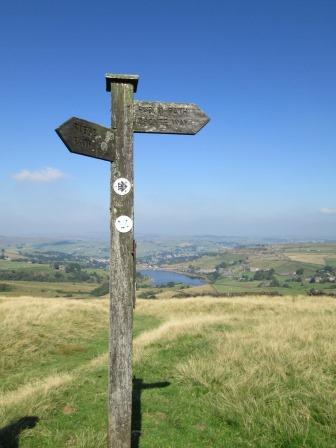 We made a small side step on to the Brontë Way. It was actually off our main route, but thanks John. It meant I could grab this picture which I hope gives a flavour of the day's exploits. Leeming Reservoir is in the distance.