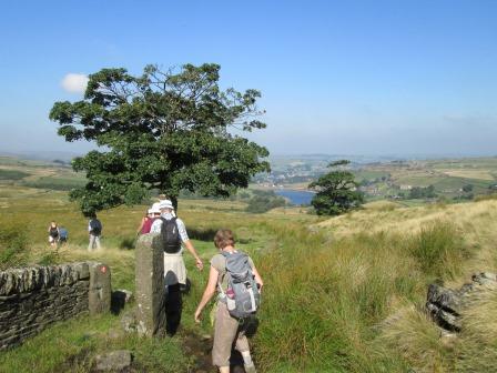 Our last CLOG walk of an all too short bank holiday visit was a sunny moorland walk. The open expanses of undulating grassland were punctuated by a few pubs (which we only used as landmarks - honest!) and by a few mills whose buildings stayed on as a testament to the busy cloth industry, once the hall mark of this area. In winter, this part of the world could become quite windswept and grey, but today it was a nice summer's day, and we relished the occasion.