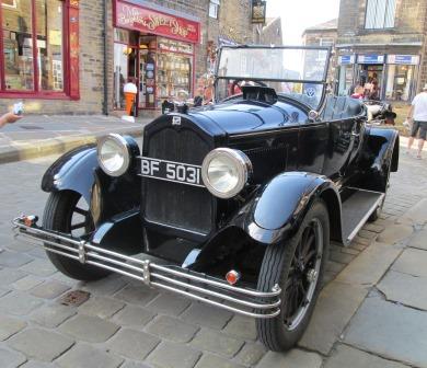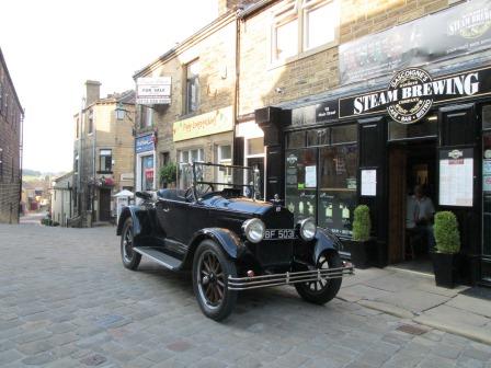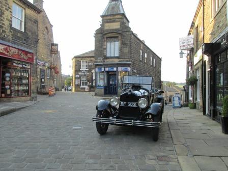 Having checked into the "Old White Lion", I spent the evening doing a mini-walk up to Penistone Hill (a mere 314 metres) behind the Parsonage. I got some shots of the day fading gradually over the moors, and realised how sensitive the light conditions can be when it comes to taking pictures. More grist to the photographic mill was an old BUIC - apparently lovingly looked after - parked at the top of the cobbled High Street; the BUIC gave the village a 20s feel, if one ignored some of the latter day posters.