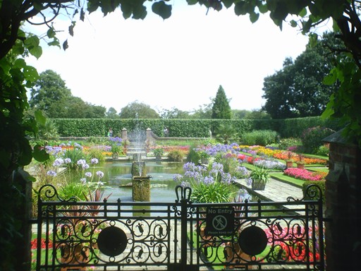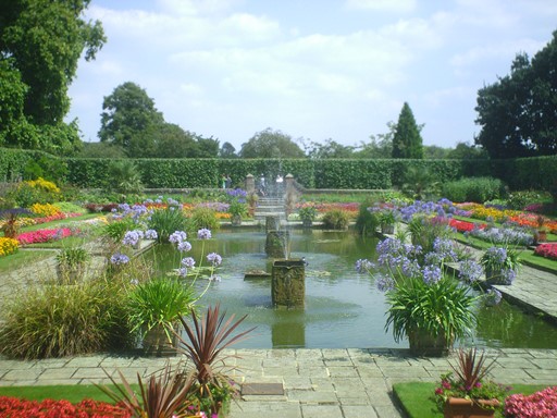 The Sunken Garden was created as late as 1908, and its design was inspired by a similar terraced and paved garden at Hampton Court Palace. Three 18th century water cisterns were retrieved from the Palace and used to form the fountains. Queen Anne and Queen Victoria were never to see the Sunken Garden, but both would probably have approved!