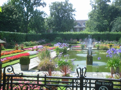 Notable features of the Palace grounds are the Orangery and the Sunken Garden. Here we also look at the north aspect of Kensington Palace, the east aspect of Kensington Palace with the Statue of Queen Victoria and the south aspect of Kensington Palace with the Gold Gates and the Statue of William III. I took the pictures in this section in August 2007, except for the one indicated, which dates to March 2019.