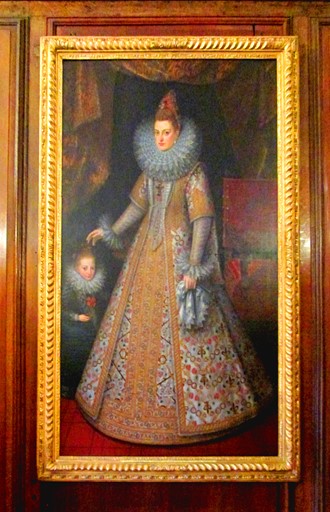 A plain white ceiling and wooden panelled walls characterize all the rooms in the Queen's Apartments. This arrangement gives the Queen's Gallery a "light and airy" feel, suitable for Mary's pastimes including reading and needlework and also walking in inclement weather. The Gallery at one time contained an abundance of carpets and silk hangings.