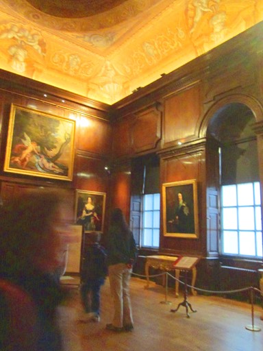 The State Apartments at Kensington Palace are rather bereft of furniture. It is officially said that this reflected the requirement of servants and courtiers to remain standing - probably not so good for the health of the said servants and courtiers. However, it appears that a lot of the furniture may have been removed, giving the State Apartments more the feel of an art gallery. Rooms in other country houses are normally filled with a lot of furniture to indicate daily life and to provide additional artistic interest for the visitors. It could be that, at Kensington Palace, such rooms for "everyday living" were in other parts of the Palace.