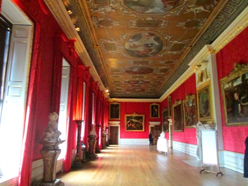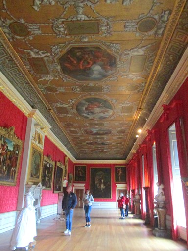The Queen's apartments are the oldest part of the Palace. Mary II, and later also her royal consorts, lived here. Compared to the King's Apartments, the Queen's Apartments had plain white ceilings. Here you will see the Queen's Gallery (1693), Dining Room and Bedroom. Rooms that escaped my photographic attention were the Drawing Room and the Closet. There is also the Queen's Staircase (1690) which was intentionally built in a plain style and provided access to the gardens, and today, is the visitor's access to the Queen's Apartments. Work, under William and Mary, on the Queen's Apartments was completed about 38 years before the completion, under George I, of the King's Apartments. [see timeline]. This time span of about 38 years may help to explain why the ceilings in the Queen's Apartments are plain in contrast to the richly painted ceilings in the King's State Apartments