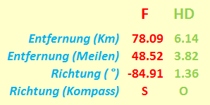 Noch eine Bemerkung. Den Erdball can man, für praktische Zwecke, meistens als eine geometrische Kugel betrachten. Die "Vogelfluglinie" ist dann eigentlich die Entfernung enlang einen Teil eines "Großen Kreises" dieser Erdkugel".