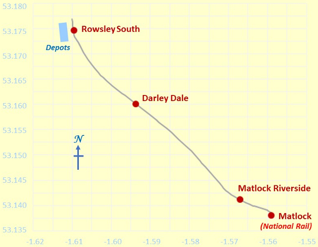 Peak Rail is a heritage railway, presently extending for about 3½ miles (5⅔ Km) from Matlock in the south to the southern reaches of Rowsley. It lies about 100 metres above sea level and was once part of the Midland Railway's main line from London St Pancras to Manchester. It represents part of the Midland Railway's civil engineering effort through the hilly landscapes of Derbyshire and Yorkshire to reach destinations such as Manchester and Carlisle, destinations which competing railway companies had already reached by less arduous routes.