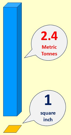 mid-size cars in the UK, including sedans and hatchbacks, can weigh between 1,200 kg to 1,600 kg (weight or force). So, our 2.4 Metric Tonnes Force per square inch would be equivalent to balancing two of the lightest cars in this category on one square inch at sea level, if this were logistically possible!! Gadzooks!!